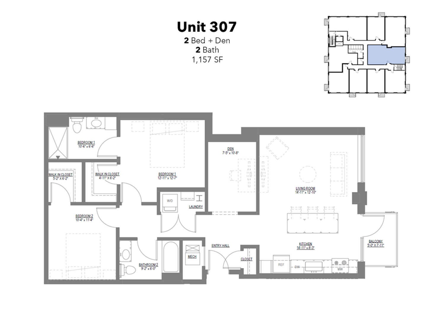 Unit 307; 2B + Den/2B (Discovery Point)
